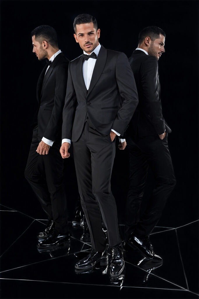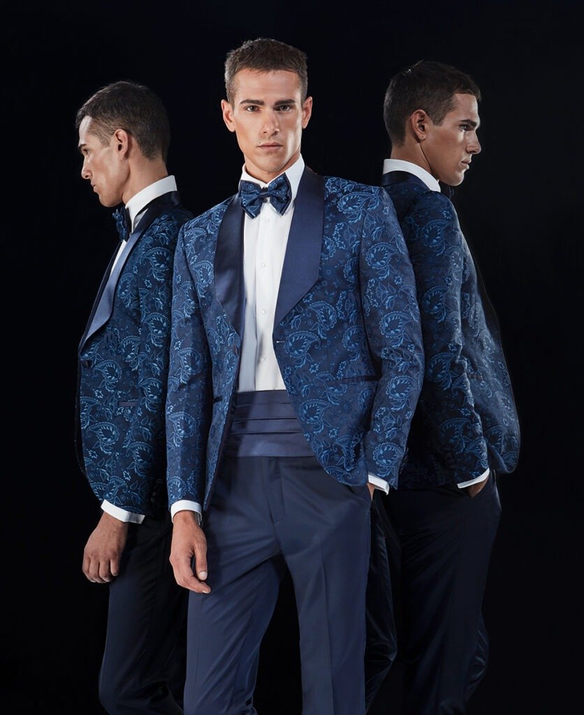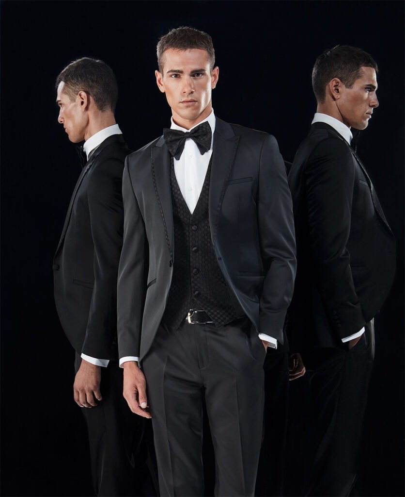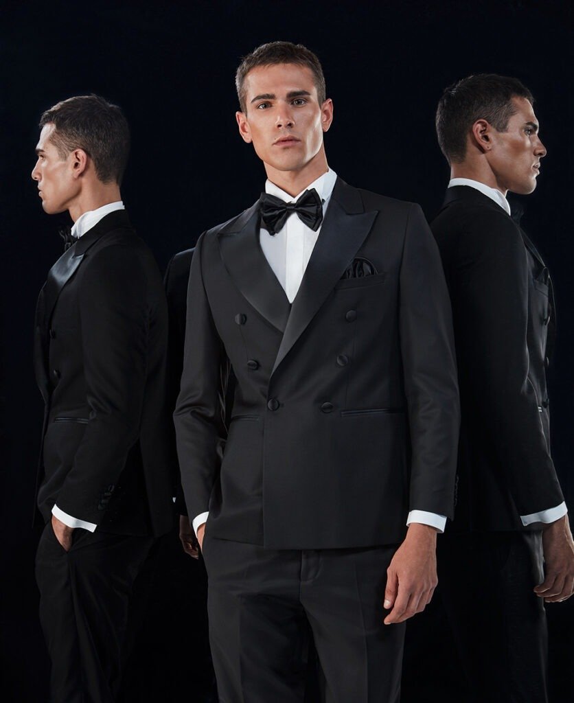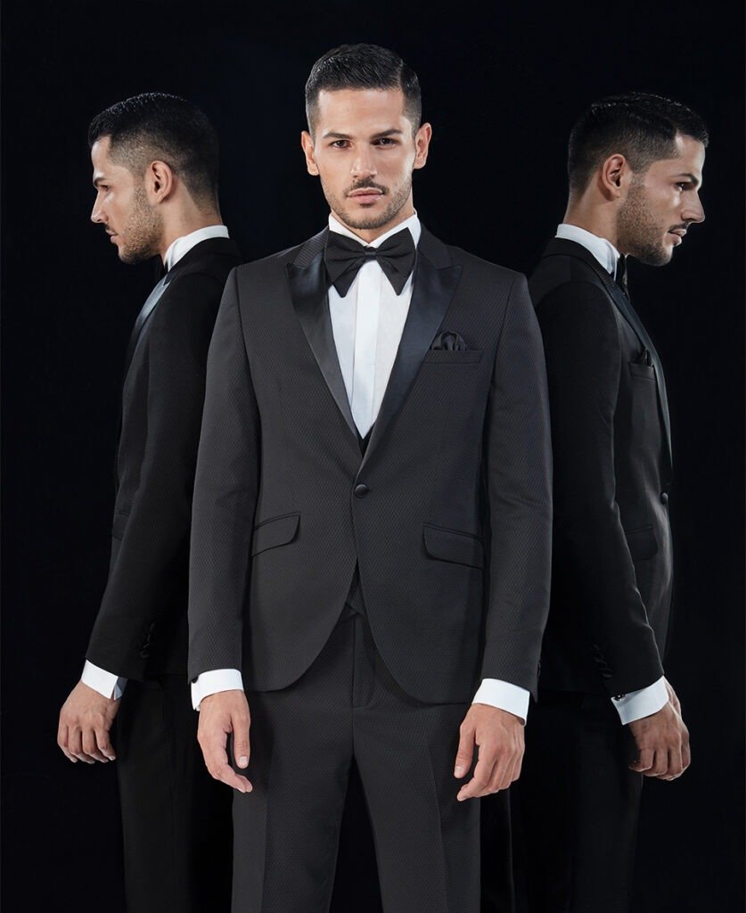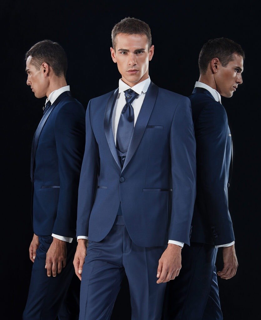 Le collezioni comprendono smoking, abiti da cerimonia e modelli di alta rappresentanza, ideali per matrimoni esclusivi e contesti raffinati.