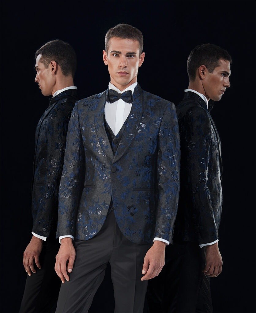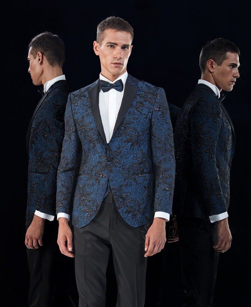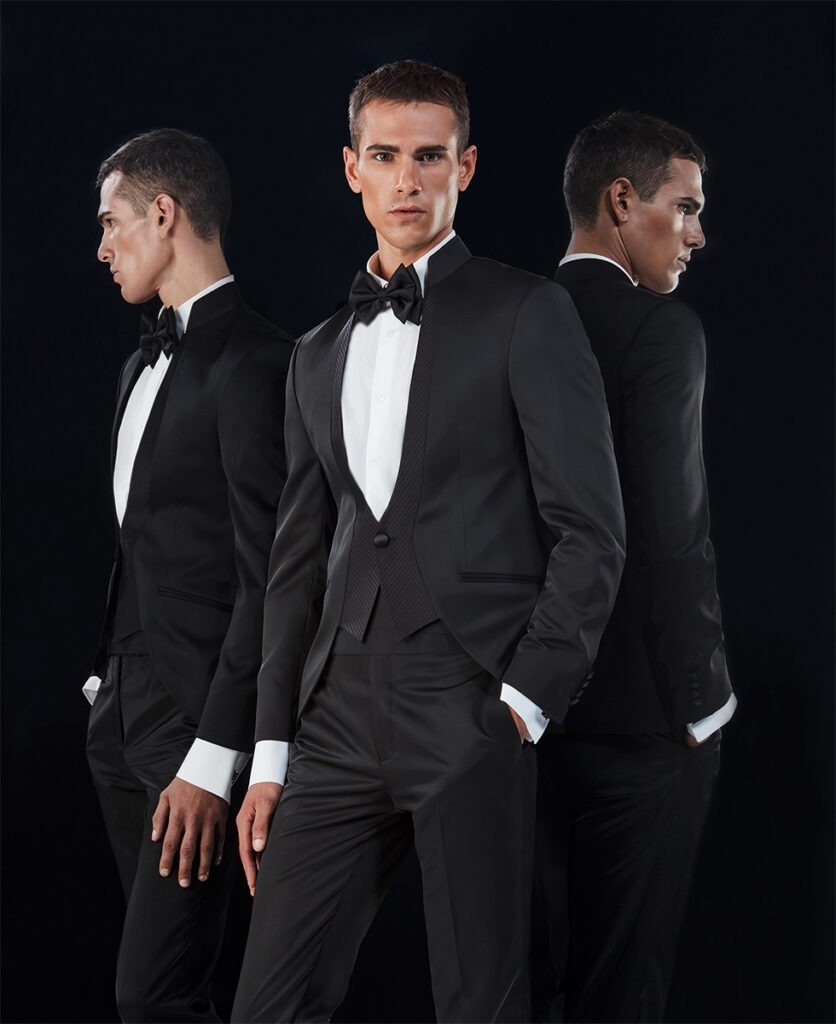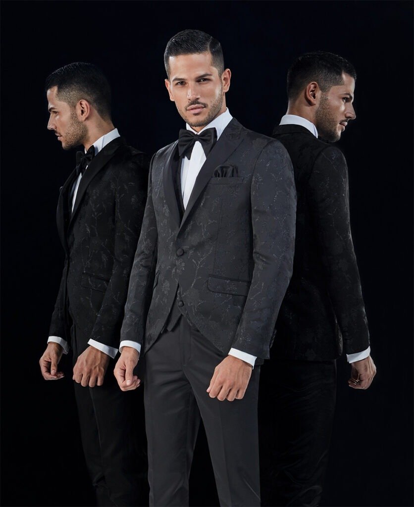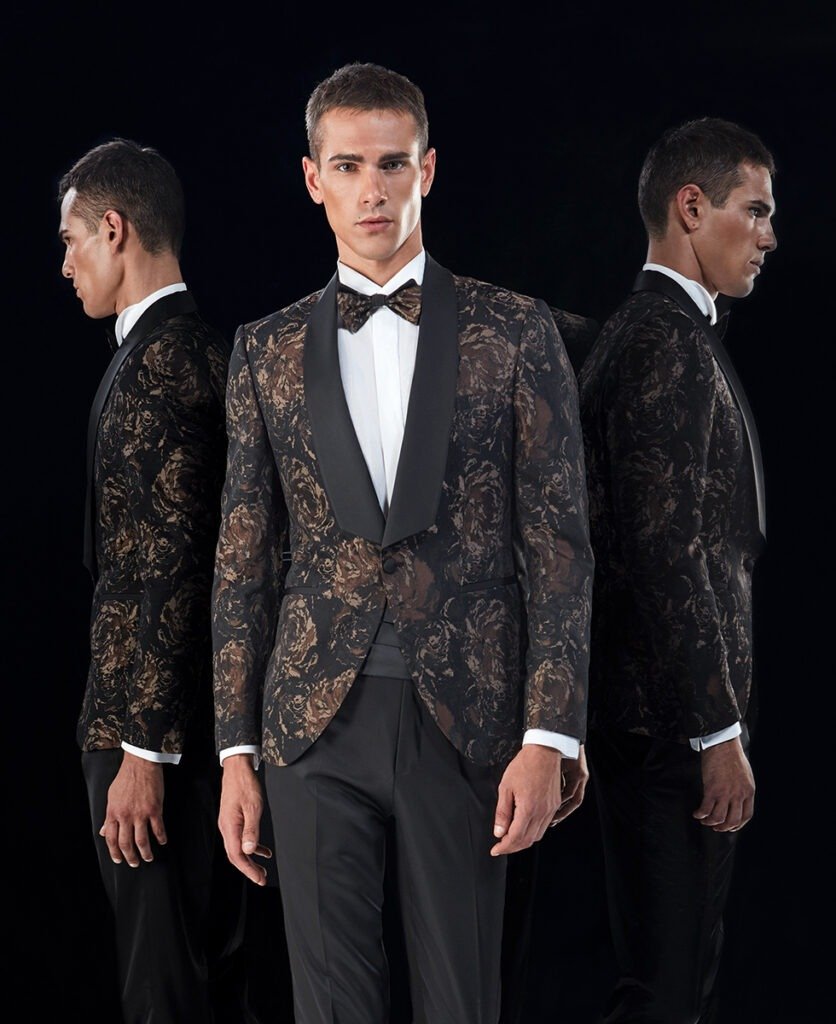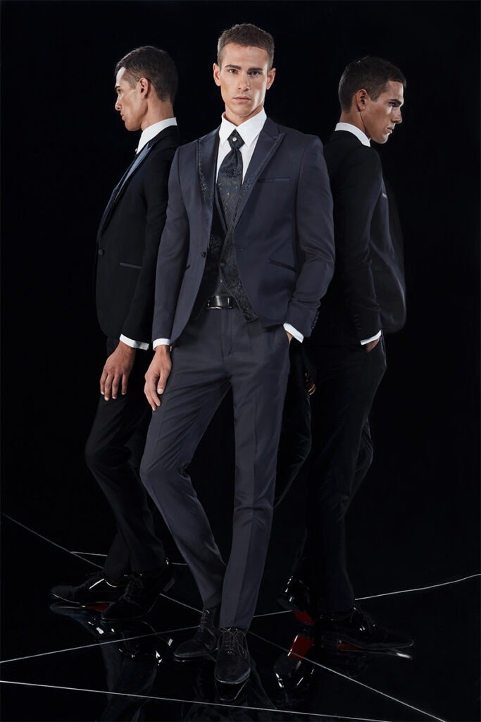 Le collezioni comprendono smoking, abiti da cerimonia e modelli di alta rappresentanza, ideali per matrimoni esclusivi e contesti raffinati.