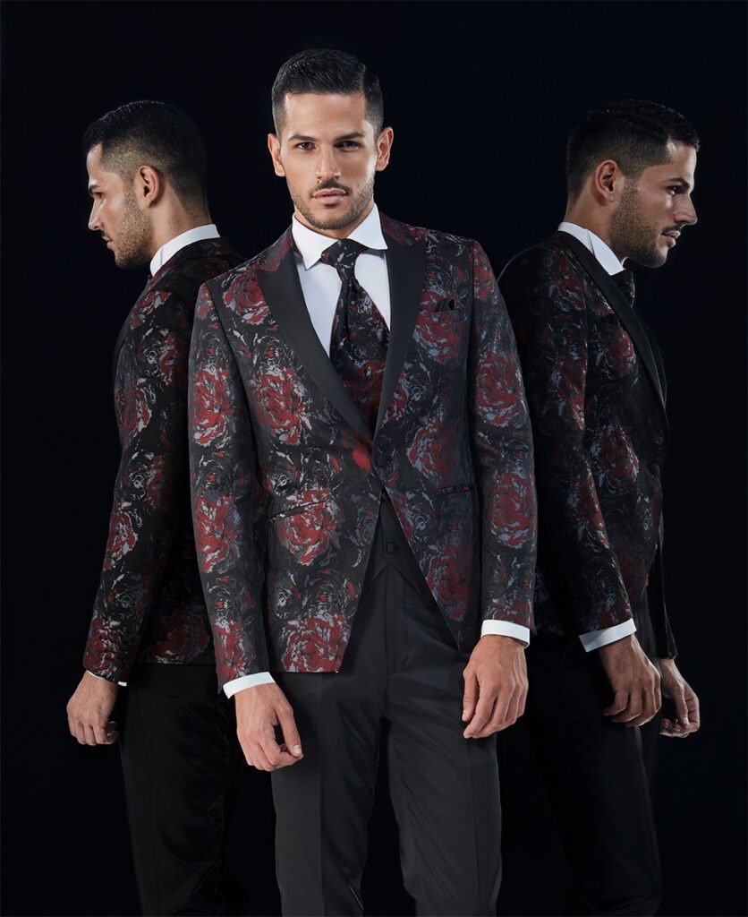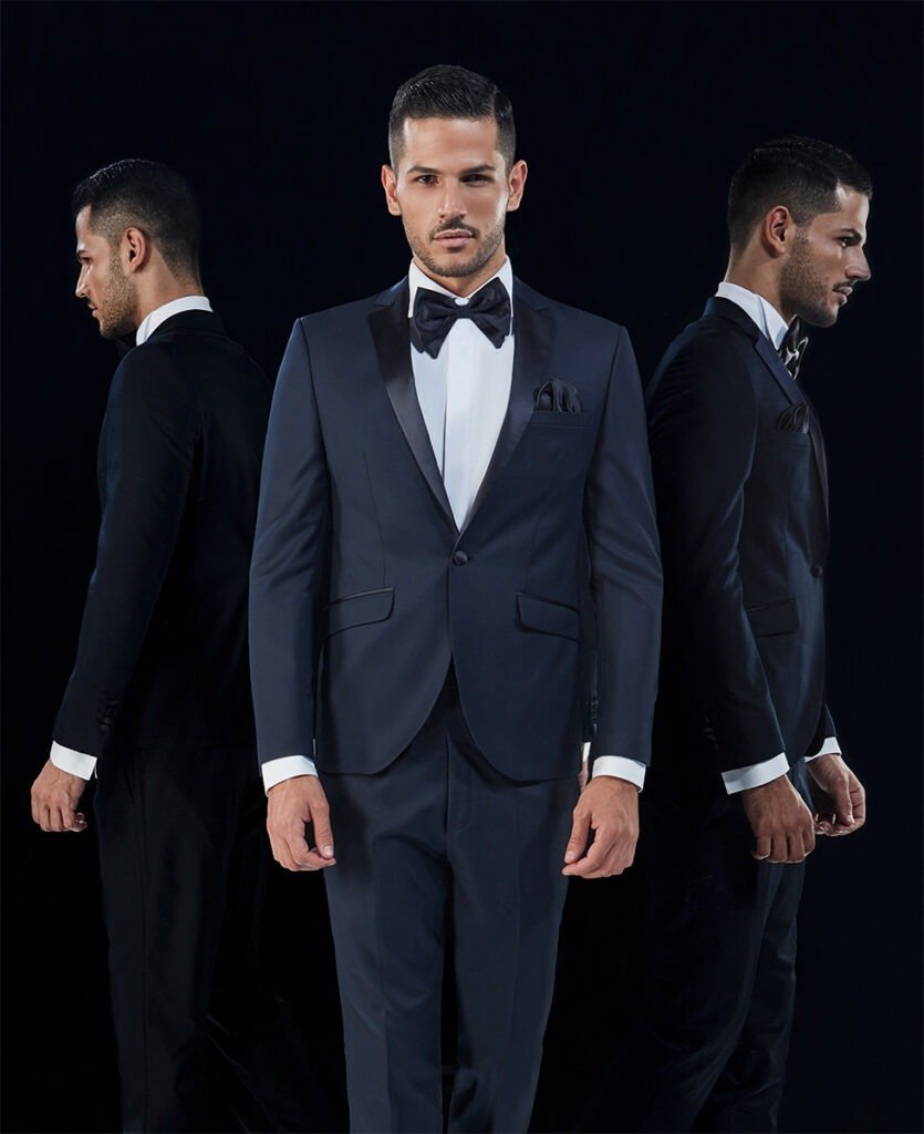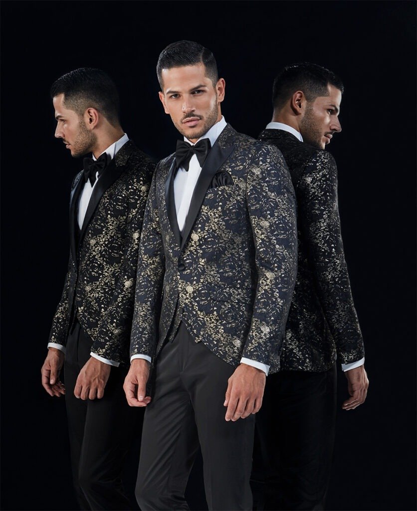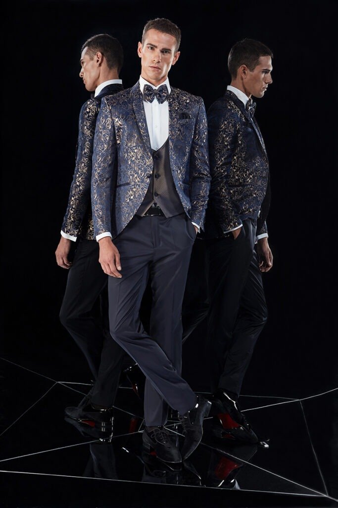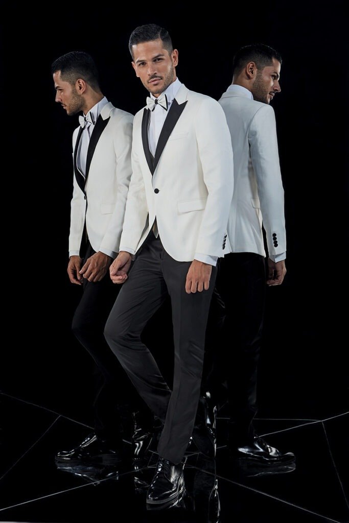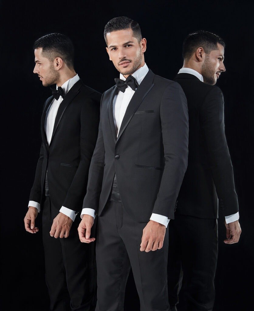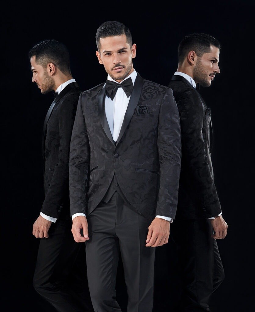Le collezioni comprendono smoking, abiti da cerimonia e modelli di alta rappresentanza, ideali per matrimoni esclusivi e contesti raffinati.
